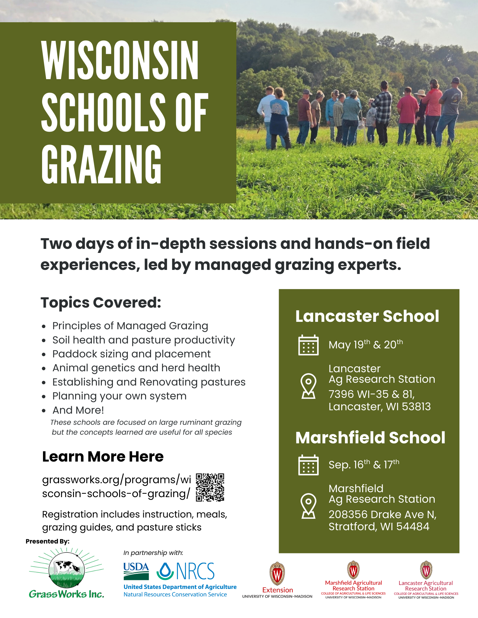 May 19 WI School of Grazing – Lancaster 9:00 am - 4:30 pm Lancaster Ag Research Station Wisconsin 35, Bloomington Event Details Get Directions