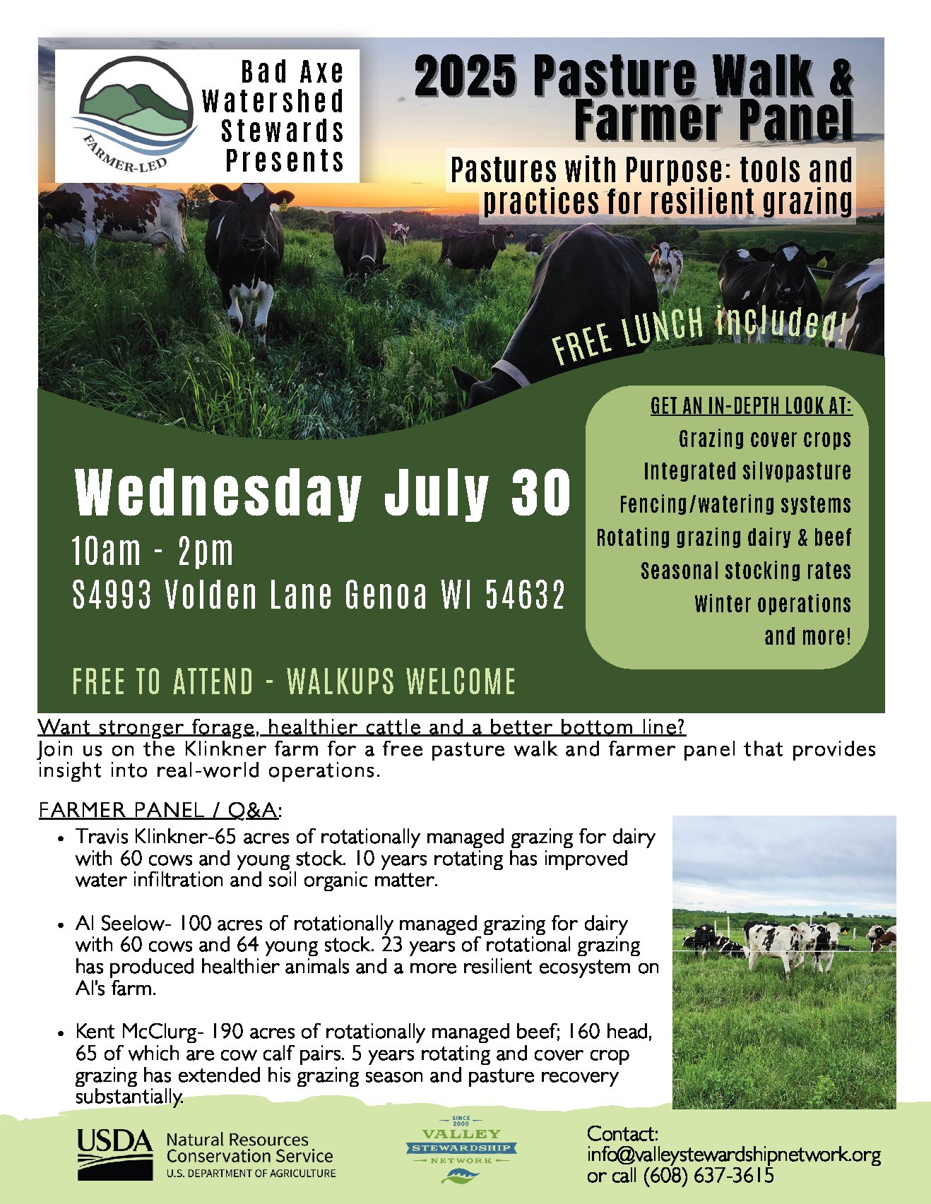 ![]() Want stronger forage, healthier cattle and a better bottom line? Join Valley Stewardship Network on the Klinkner farm for a free pasture walk and farmer panel that provides insight into real-world operations. Lunch is included! FARMER PANEL / Q&A: