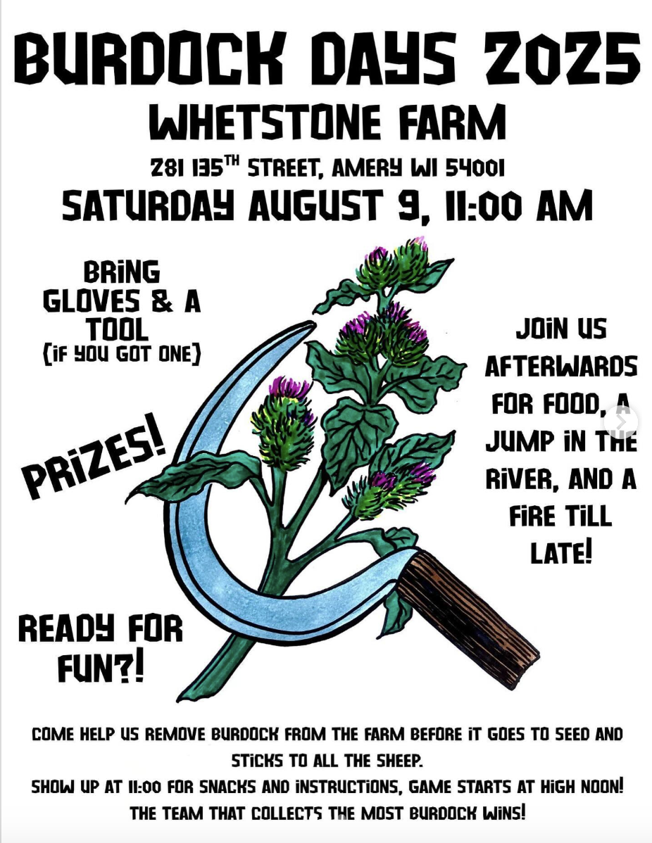 ![]() It’s that time of year again! BURDOCK DAYS 2025 🌱🎉 Come for a day of work, games, and fun to help us remove burdock from the farm before it goes to seed and sticks to all the sheep. Show up at 11:00 for snacks and instructions on the game rules, game starts at High Noon! […] |