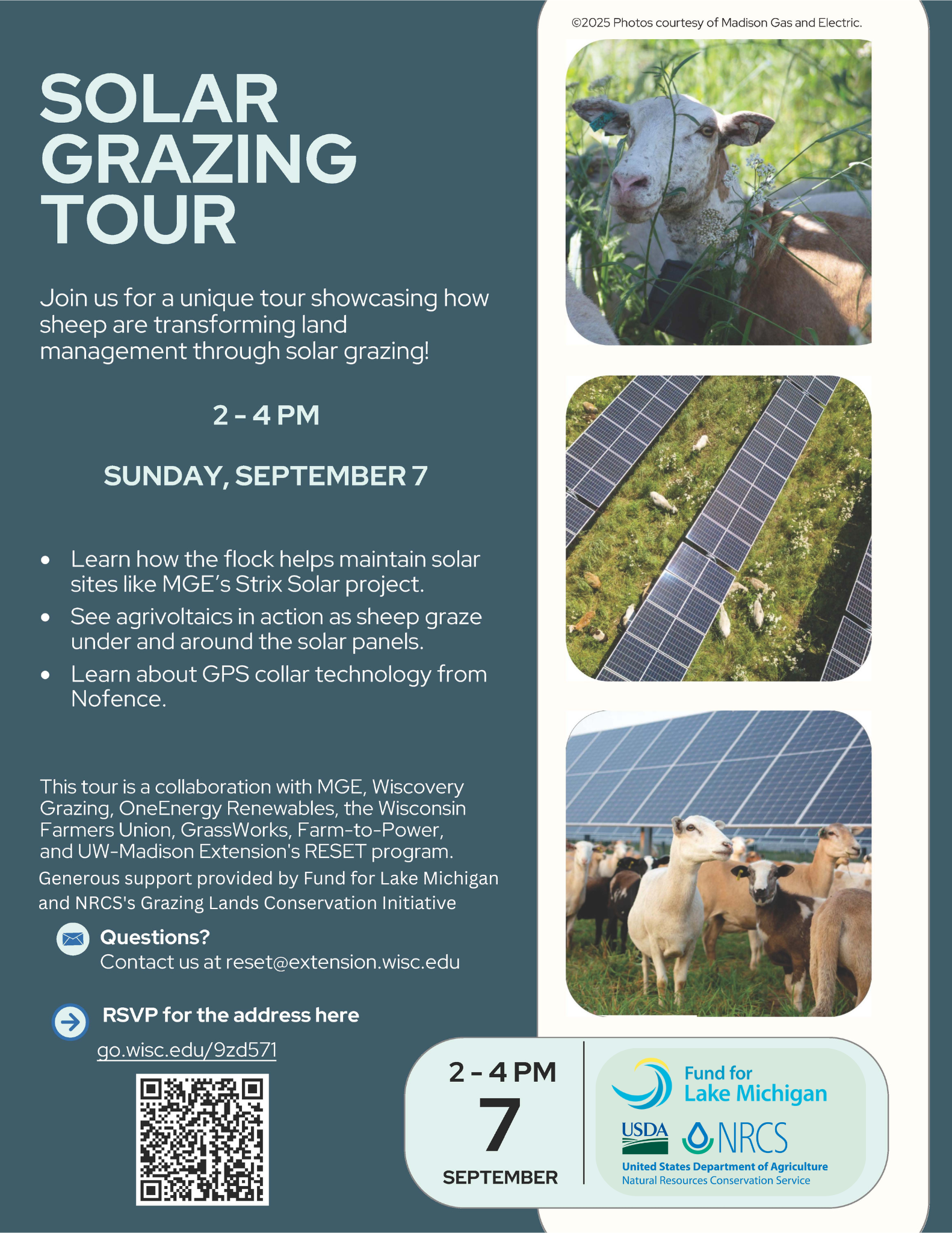 Join us for a unique tour showcasing how sheep are transforming land management through solar grazing! Learn how the flock helps maintain solar sites like MGE’s Strix Solar project. Learn about GPS collar technology from Nofence. See agrivoltaics in action as sheep graze under and around the solar panels. Tour Information This tour is a […]