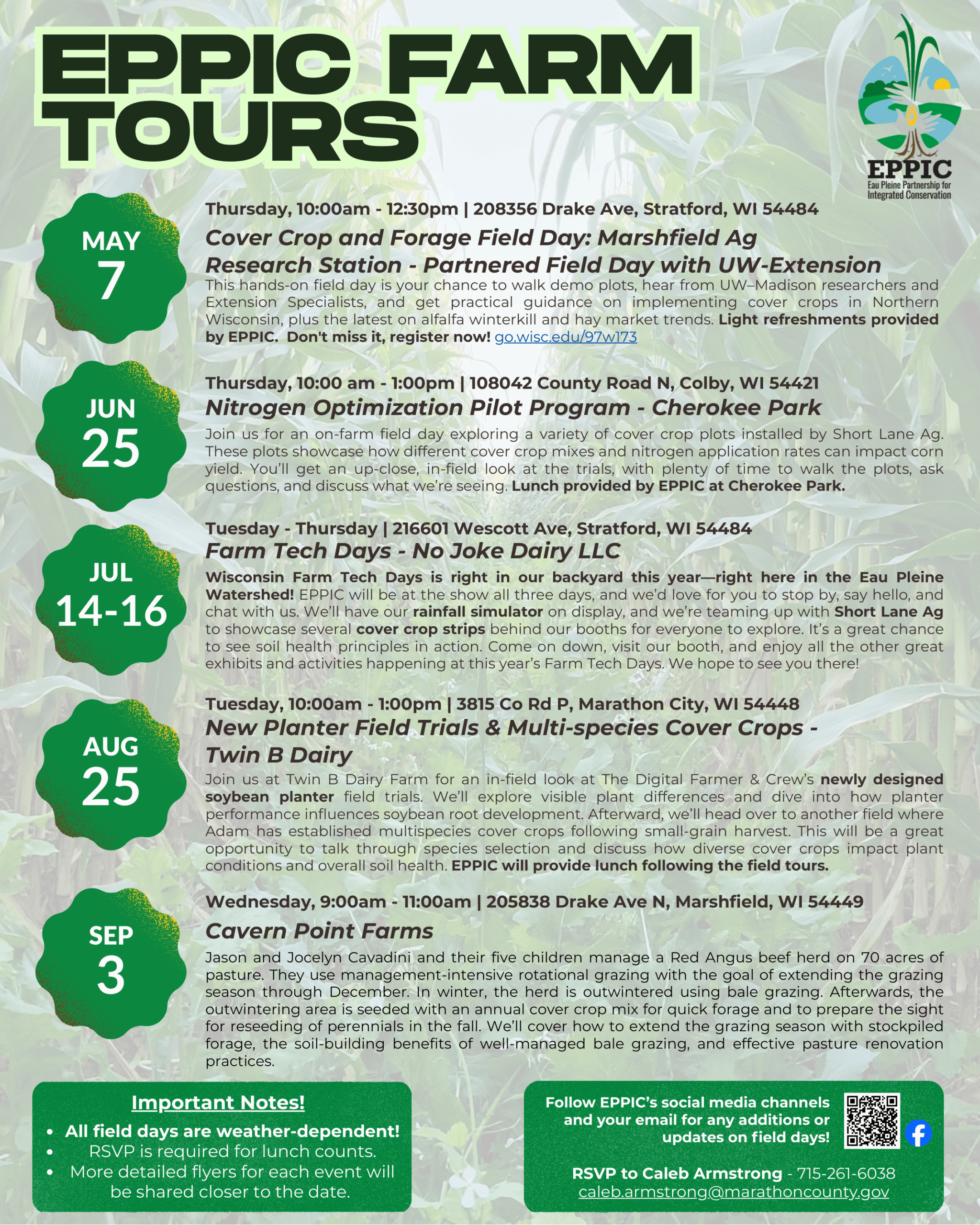 EPPIC FARM TOURS series Cover Crop and Forage Field Day: Marshfield Ag Research Station - Partnered Field Day with UW-Extension This hands-on field day is your chance to walk demo plots, hear from UW–Madison researchers and Extension Specialists, and get practical guidance on implementing cover crops in Northern Wisconsin, plus the latest on alfalfa winterkill […]