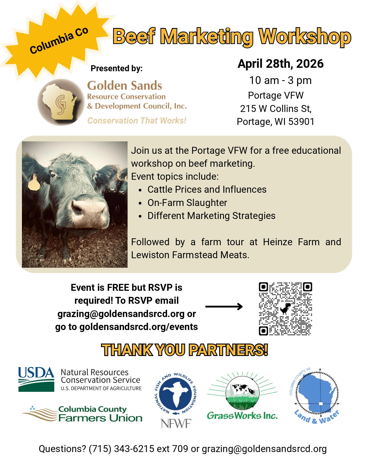 Columbia County Beef Marketing WorkshopApril 28th - 10am - 3pmPortage VFW - 215 W Collins St, Portage, WI 53901 Join us at the Portage VFW for a free educational workshop on beef marketing.Event topics include:-Cattle Prices and Influences-On-Farm Slaughter-Different Marketing Strategies Followed by a farm tour at Heinze Farm and Lewiston Farmstead Meats. This event […]
